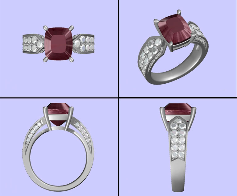 石の高さ、爪の厚み、裏側の構造など、見えない部分まで正確にデータ化。美しさと耐久性、そして後工程の作業性を両立させる、精密で重要な設計工程です。
