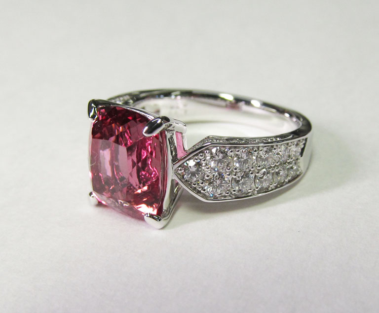 年齢を重ねることで色味が合わなくなって身につけなくなったとのことでご相談いただきました。地金を磨き直すことでダイヤの輝きも取り戻し、金メッキをほどこすことで、宝石の色も金が映り込んでグリーンの色がきれいに映えるようになりました。