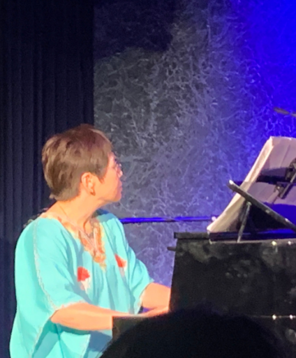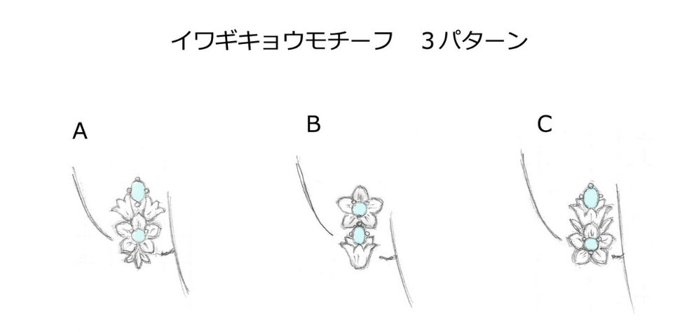 そしてその色からイメージするのはヒマラヤ。還暦記念でヒマラヤにチャレンジされた竹内さまにとってブラジルとヒマラヤを想起させる石は「自分にとってのお守りになる」と感じたそうです。登山が趣味で高山植物が好きという竹内さまとご相談しながらイワギキョウをモチーフにしました。「私を主役にするジュエリー」と気に入っていただきエベレストから戻られた還暦のクリスマスコンサートで初披露。ピアノを弾きながら歌う竹内さまの姿がスポットライトの下で光り輝いていました。
